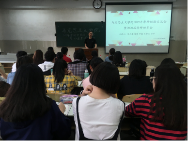 于4月8日下午在12教101室举行了2019届毕业生考研交流会,学院分党委书记吴智勇参加了本次会议,并做考研动员。