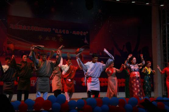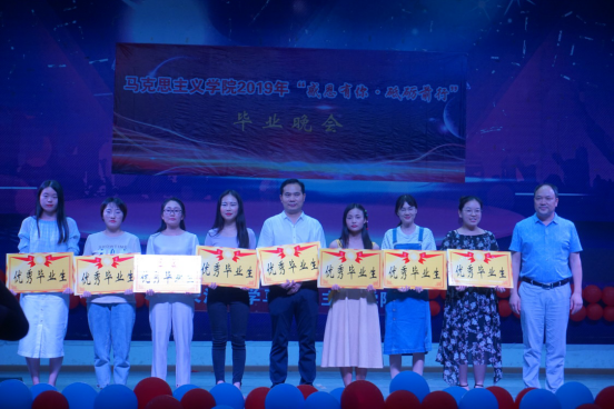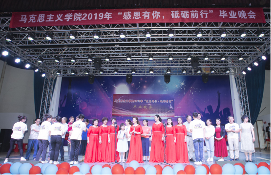 表彰大会结束后,动感火热的开场舞《DALLA DALLA》点燃了毕业晚会。《我的新衣》将现代说唱与传统京剧相融合,使人耳目一新;现代舞《pick me up》、《heart shaker》清纯可爱,活力无限;民族舞《女儿会》、《锅庄风情》柔婉袅娜、质朴潇洒,赢得现场阵阵掌声;歌曲《私奔到月球》、《不为谁而作的歌》温柔甜美、娓娓动听,让人赏心悦耳;《创意T台秀》和相声《我说了算》多元创新、包袱连连,让人忍俊不禁,掌声不断。贾廷秀教授指导的暖课作品《以青春致敬马克思》也再次搬上了毕业晚会的舞台,思政2017级的同学们用话剧的形式展现了青年马克思的雄才伟志,以及他与恩格斯的深厚友谊;肖芬蓉老师的女儿班传珮小朋友也献唱了让人倍感清新流畅的民谣《卢沟谣》;思政11602班的朗诵《不说再见》,追忆了大学时光的点点滴滴,表达了他们对学长学姐的感恩与不舍;毕业班的情景剧《长大,长大,再见》压轴出场,一幕幕情景剧记录了2019届毕业生在长大、在马院难忘的青春岁月,引发了师生强烈共鸣。最后,贾廷秀等7位成人色情网