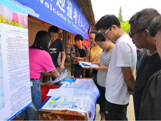 在应城一中和汉川二中的招生宣传工作顺利开展。驻校宣传期间宣传小组不仅向当地考生发出“相约长大”的诚挚邀请,也开展相关的报考咨询服务,与考生、家长“面对面”解读招生政策,招生宣传现场火爆异常。6月24日下午,吴智勇、马小佼一行奔赴汉川一中,向校领导了解了2019年的考生情况,并在校领导的协调下做好了招生宣传的准备工作。6月25日,汉川一中的招生宣传现场气氛如当天的太阳一般火热,每一位咨询报考信息的家长眼中都流露出兴奋与忧虑,驻校宣传小组的组员也都尽心尽力的做着讲解与宣传。