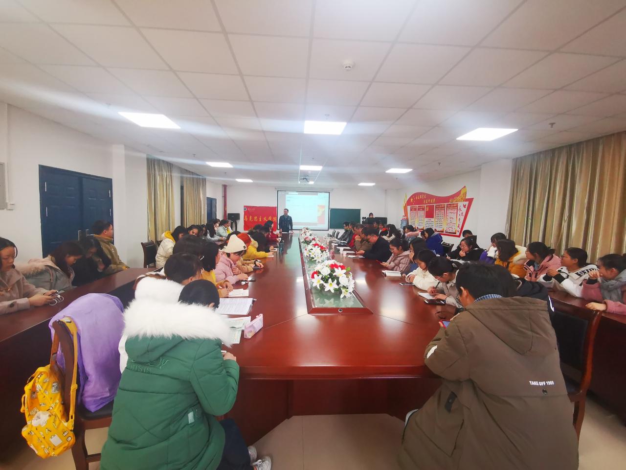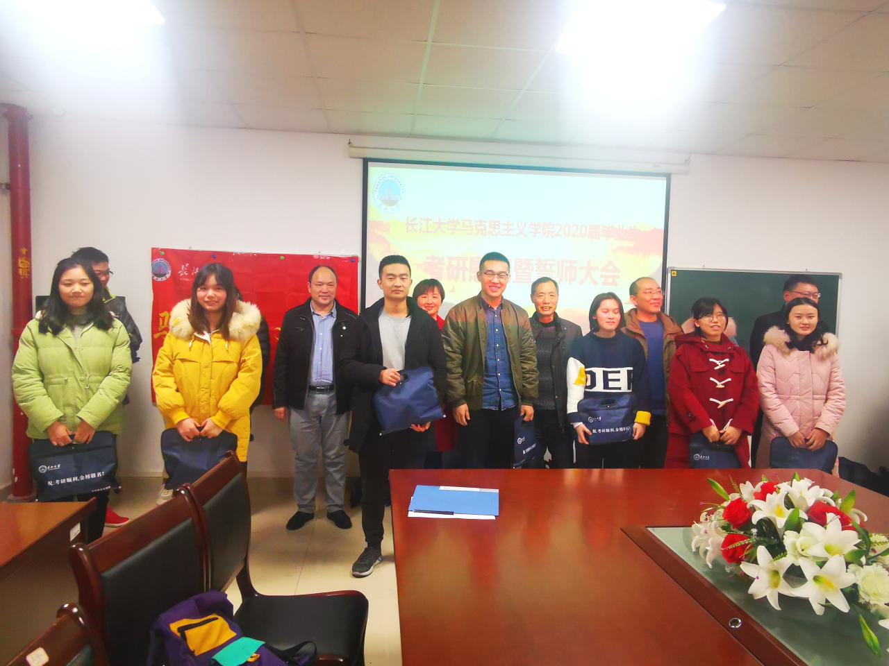于12月18日下午4:00在文科大楼1104举行2020届毕业生考研慰问暨誓师大会,学院党委书记吴智勇、院长姜学勤、党委副书记马小佼、副院长涂江波、院长助理徐骆、院长助理谷军、思政11601班班主任邓亚中、全体2020届毕业生以及部分低年级学生代表参加了大会。