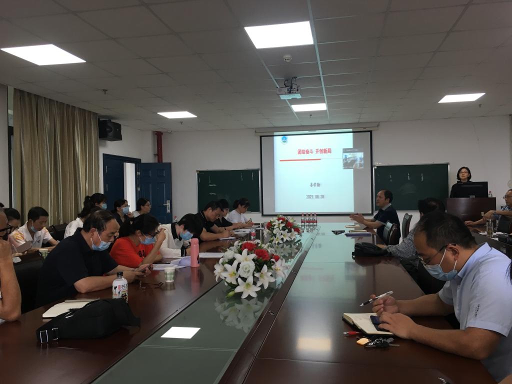 全体教职工61人线上线下齐聚,召开2021-2022学年第一学期开学工作会议。院长姜学勤主持会议。
