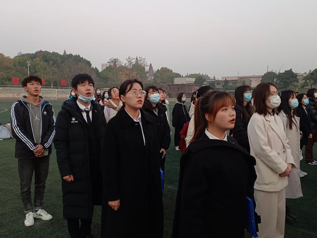 在东校区田径场举行“奋进新征程,走好赶考路”主题升旗仪式。学院党委书记刘小燕、党委副书记马小佼、副院长涂江波、学工办主任张云雾、辅导员李敏及全体同学参与本次活动。