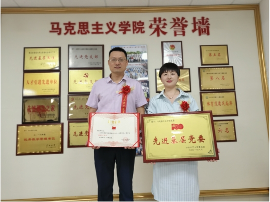 党委被授予先进基层党委,思政课部荆州党支部被授予先进党支部,学院党委副书记马小佼被授予优秀党务工作者,辅导员张云雾、2019级研究生郑亚岚被授予优秀共产党员,思政课教师李振华被授予模范共产党员,并在全校表彰大会上领誓,带头重温入党誓词。