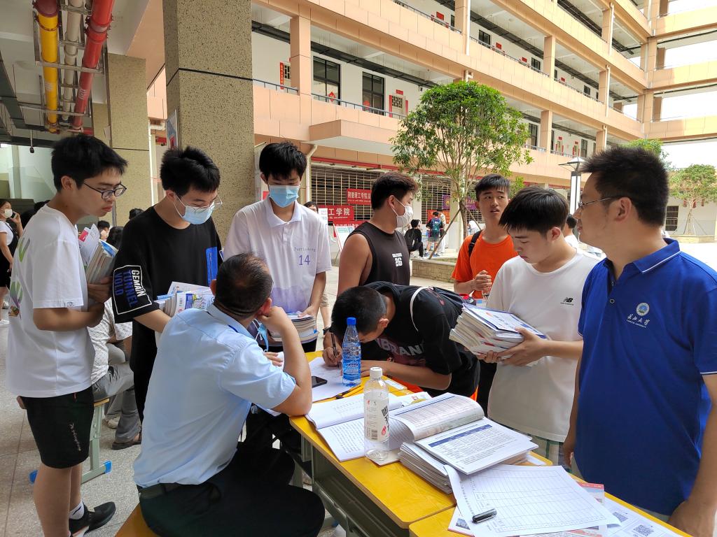 走线宣传小组会合,积极有序开展咨询解答、进班宣讲、宣传册发放等工作。期间,校长助理许晓宏一行来到招生宣传现场指导招生宣传工作,慰问招生宣传工作人员,并与应城一中校长魏少华进行了深入交流。