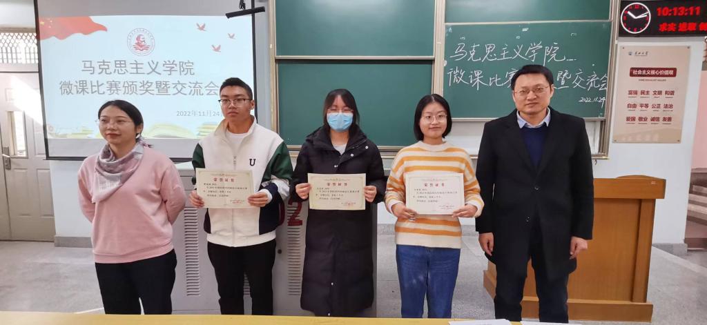 微课比赛颁奖暨交流会”活动。本次活动由思政12001班王子怡同学主持,李振华老师、汤波兰老师、思政12001、12002班全体学生和部分获奖学生代表参加了此次活动。