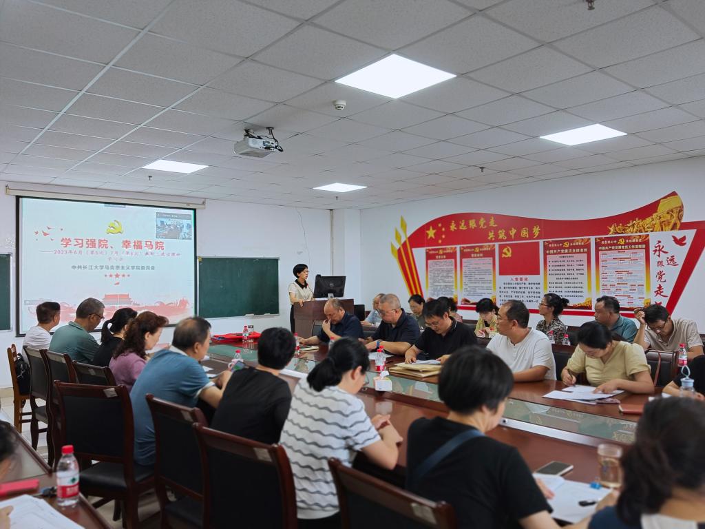 会上,首先进行了教职工政治理论学习活动。院党委书记刘小燕领学了“习近平在中共中央政治局第五次集体学习时强调 加快建设教育强国 为中华民族伟大复兴提供有力支撑”、“习近平主持召开二十届中央国家安全委员会第一次会议强调 加快推进国家安全体系和能力现代化 以新安全格局保障新发展格局”、“习近平在文化传承发展座谈会上强调 担负起新的文化使命 努力建设中华民族现代文明”、“习近平在中共中央政治局第六次集体学习时强调 不断深化对党的创新理论的规律性认识 在新时代新征程上取得更为丰硕的理论创新成果”、“习近平对党的建设和组织工作作出重要指示强调 深刻领会党中央关于党的建设的重要思想 不断提高组织工作质量”、习近平总书记关于档案工作的重要指示批示摘编、“王蒙徽书记在荆州调研时的重要讲话精神”、“全省《关于深化党员干部纪律教育工作的意见》及其解读”等内容。她还有针对性地宣讲了全省主题教育工作推进会会议精神,以及中共湖北省委主题教育领导小组办公室印发《关于在主题教育中认真学习借鉴“浦江经验”的通知》、《湖北省高校领域突出问题专项整治工作方案》,转发中央《关于在主题教育中学习运用浙江“千万工程”经验案例的通知》、《关于认真学习贯彻习近平总书记重要讲话精神深刻领悟以学增智重要要求 推动主题教育走深走实的通知》、《关于在主题教育中坚决防止形式主义 坚决杜绝“低级红”“高级黑”现象的通知》、《关于认真学习贯彻习近平总书记重要讲话精神 进一步落实以学正风重要要求的通知》等文件精神,传达了学校近期重要活动和会议精神,通报了学院上半年意识形态工作情况,部署了暑期学院党建与思政工作。