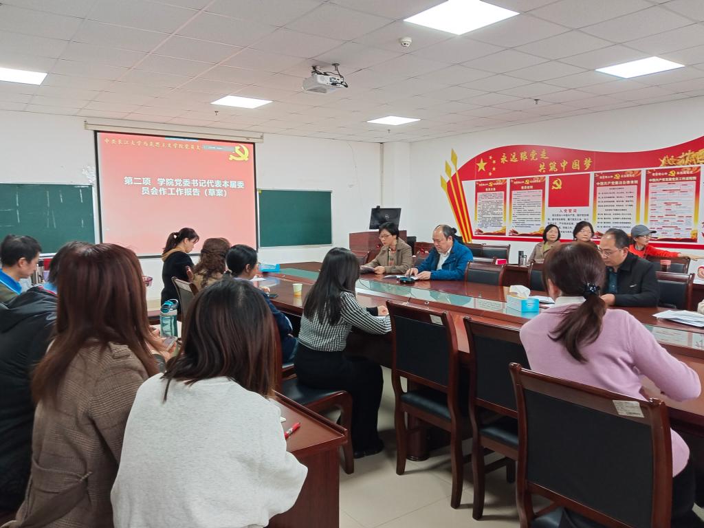 党委换届选举党员大会在文科楼1104室召开。学院领导班子、全体师生党员参会,会议由院党委书记刘小燕主持。