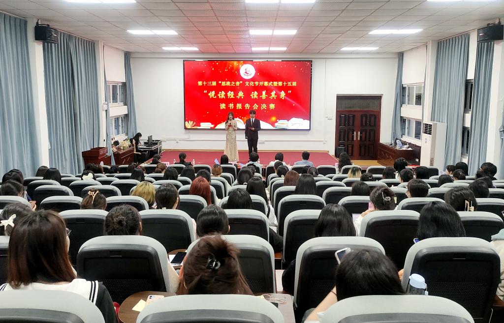 主办的第十三届“思政之音”文化节开幕式暨第十五届“悦读经典·读善其身”读书报告会决赛在东校区15教101学术报告厅举行。学院党委书记刘小燕,副书记汤慧珍,副院长张莉,青年教师孙萌、彭孝光,学工办主任张云雾及兼职辅导员何先澳担任本次比赛评委。学生代表、参赛选手共计200余人,同赏书香盛宴。
