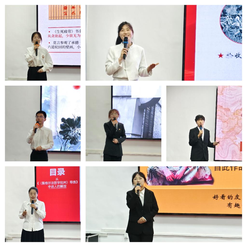 王玮琦等14名参赛选手结合自身学习经历、成长足迹,畅谈读书收获、分享读书心得。借助精致美观的PPT,从《中国人的精神》《法兰西的阶级斗争》《兄弟》《你当像鸟飞向你的山》《皮囊》《文化苦旅》《边城》《生死疲劳》《苏东坡传》《帝国主义是资本主义的最高阶段》《红星照耀中国》《文明型国家》《黑格尔法哲学批判导言》《撒哈拉的故事》等经典书目中,他们选取自己喜欢的段落句子进行交流分享,从书本中关照现实、在交流中增长智慧、从探讨中凝聚共识,在分享中传递文字之美、思想之美、人性之美、生活之美。深邃的解析和动人的讲述,展现了“00后”青年奋斗、无畏、昂扬的新时代风采,引起了听众强烈的思想共鸣。经过一个半小时的激烈角逐,成人色情网