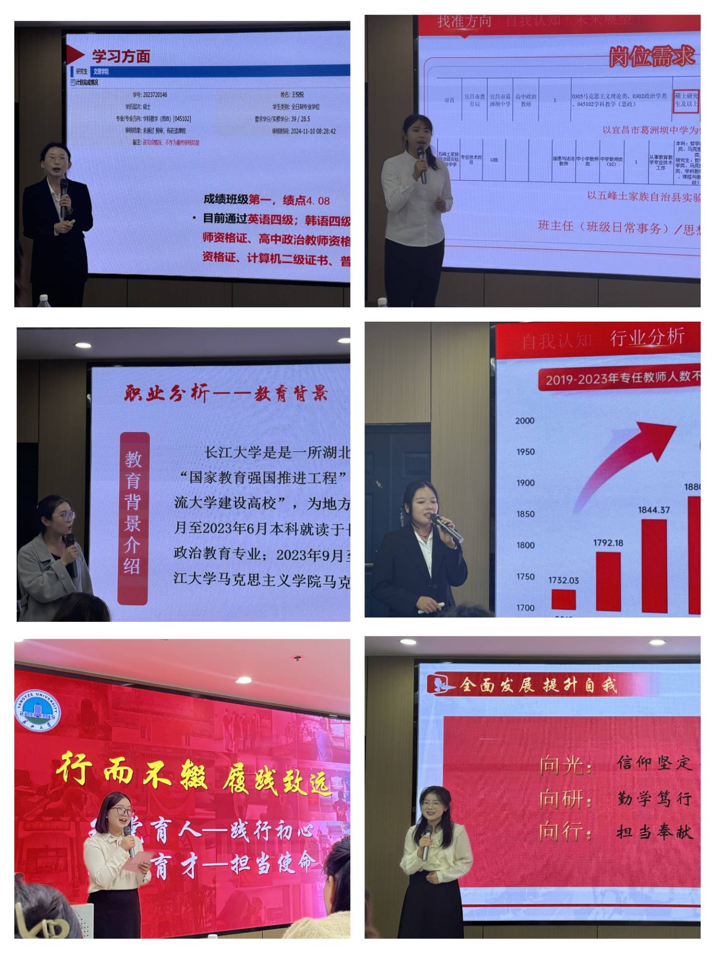 “当理想与现实有冲突时,你该如何抉择?”、“面对职业规划中的不确定性,你将如何应对?”评委结合根据选手的陈述和现场表现逐一进行了提问,着重从职业理解、岗位胜任力等方面提出了改进意见。答辩结束后,现场决出了一等奖3人、二等奖4人、三等奖5人。