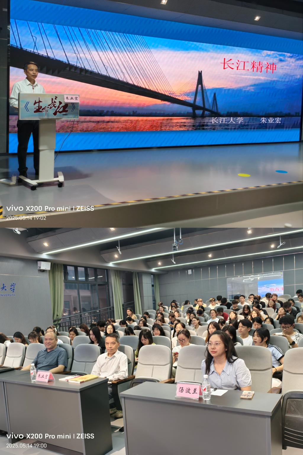 原党委书记朱业宏老师压轴主讲,从博大、仁爱、自新、坚韧四个维度,带领同学们感悟长江精神,思考如何实现生命价值。