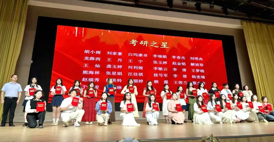 副院长涂江波宣读表彰文件后,黄龙、该院党委副书记汤慧珍、院长姜学勤为2025年成功考取硕士及博士研究生的优秀学子颁发荣誉证书。