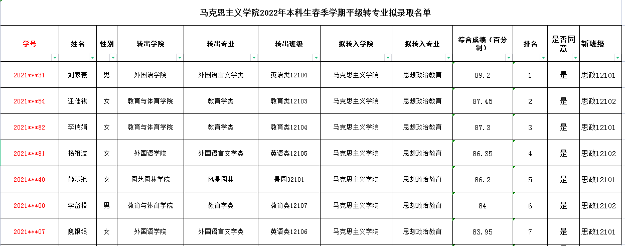 对通过审核的14名学生进行了面试考察,汇总小论文成绩及面试考核成绩,形成最终录取名单。经学院党政联席会议讨论通过该名单,现将马克思主义学院2021级本科生春季学期转专业拟接收名单予以公示。公示时间:2022年3月2日 -2022年3月3日。公示期间如有疑问,请联系成人色情网