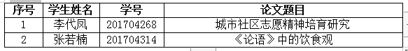 根据《关于组织评选2021年校级优秀学士学位论文的通知》要求,结合学院实际,并根据学院各答辩小组答辩成绩,产生6名成绩优秀毕业论文,分别为:李代凤、张若楠、罗金、董嫚、黄冬花、王了。通过学院资格审核,学位评定委员会集体研究决定,推选出2篇优秀本科毕业论文参加校级优秀毕业论文评选,现将评选结果公示如下: