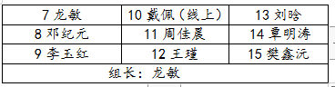 成员:尹业香(组长)、涂江波(组长)、万敏、蒋萍、徐骆、王贤锋、肖芬蓉、邓亚中