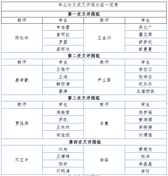 附录:毕业论文交叉评阅分组一览表
