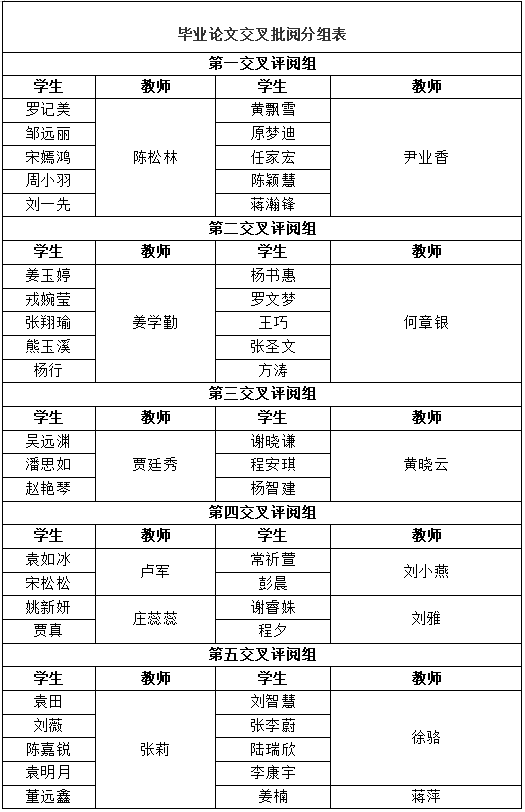 附录:毕业论文交叉评阅分组一览表