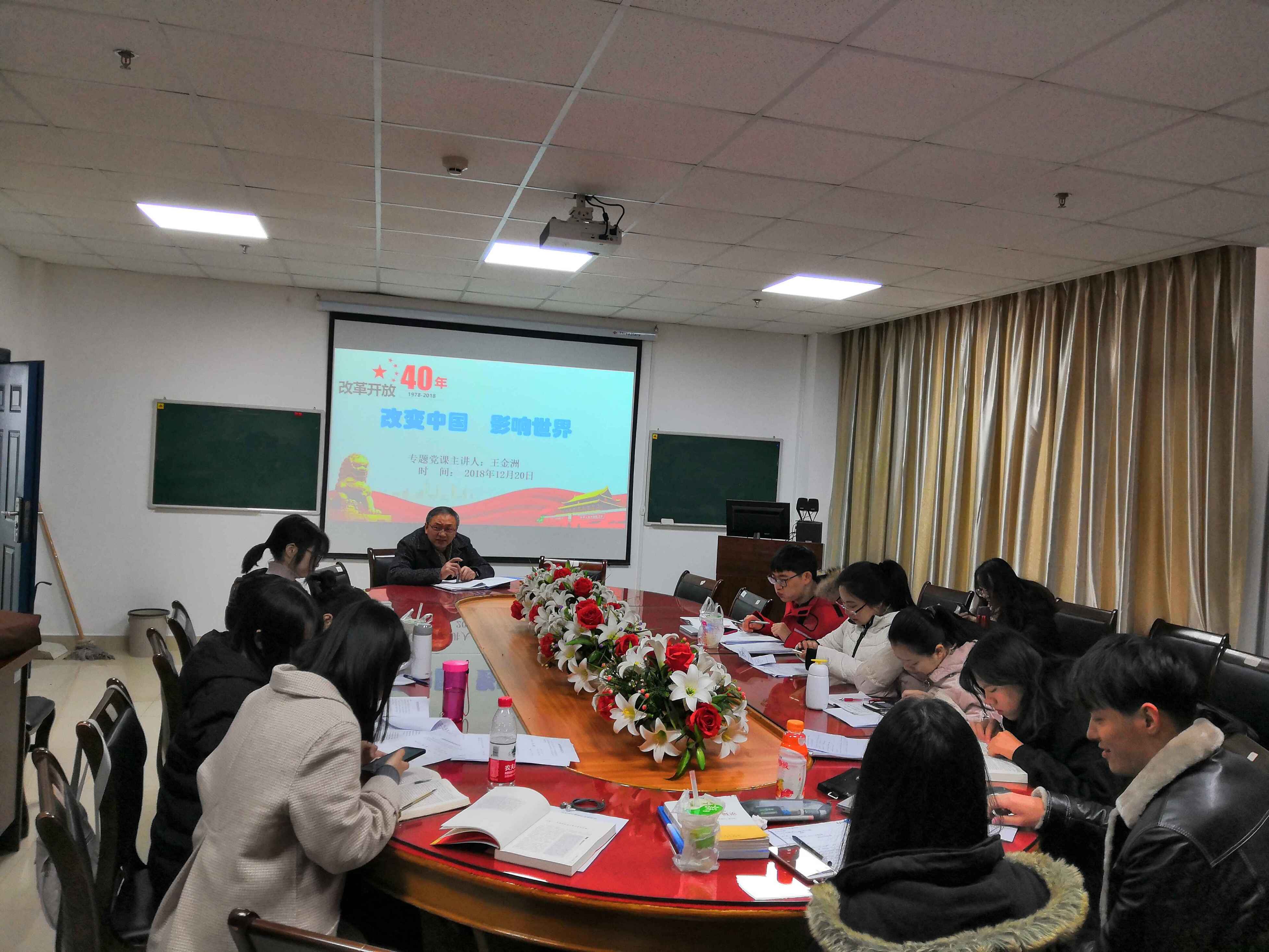 院长王金洲为研究生党员讲了题为《改变中国 影响世界》的主题党课,引导研究生党员认真学习、深刻领会、准确把握改革开放的历史脉络、辉煌成就以及重要意义。