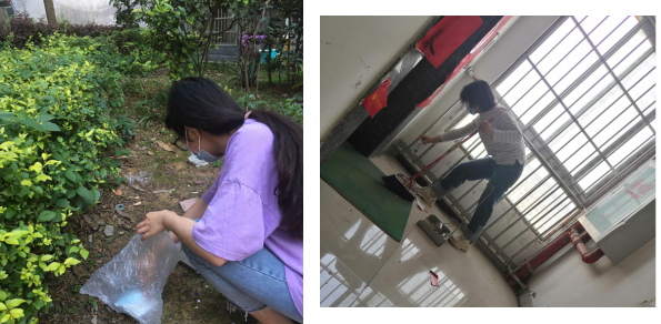 邓驰韵和刘洁同学则积极主动地投入到所在社区的环卫工作之中。为期半天的公益活动,简单的工具与简单的打扫程序,或许不会引起来往行人的注意,却强化了她们的环保意识、公益意识和全心全意为人民服务的宗旨意识。她们也表示,在今后,她们会向身边的人宣传环保知识,也会抽出更多时间参与公益活动,用行动感染周边的人。