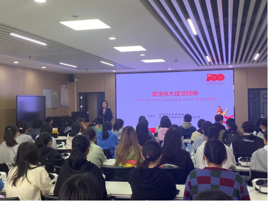 党委书记刘小燕在文科楼1008室作学习贯彻习近平总书记“七一”重要讲话精神专题党课。