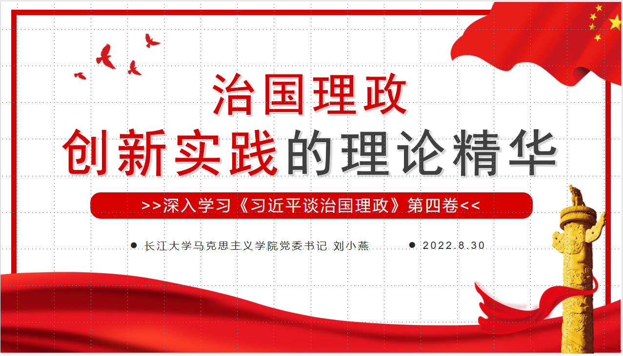刘小燕从“坚持党的全面领导是解读中国成功之路的首要密钥” “把为民造福作为中国共产党执政最重要的政绩”和“跳出历史周期率必须坚持自我革命” ”三个角度展开阐述《习近平谈治国理政》第四卷与前三卷是一个有机结合的紧密整体,展现的是认识与时俱进,理论不断创新创造的中国之治的发展轨迹。刘小燕开门见山、言简意赅的点出了第四卷与前三卷的关系所在,为研讨指明了方向和要点。讲解过程既突出第四卷理论发展创新,又穿插前三卷内容的回顾、总结、提炼,学习研讨有广度有高度有深度。