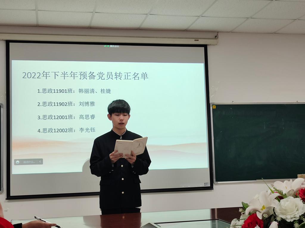 “恳请党组织批准我的转正申请”,在2022年下半年预备党员转正大会上,韩丽清等五位预备党员就预备期内在学院各组织内的学习、思想、志愿和工作表现向党组织提出了转正申请。