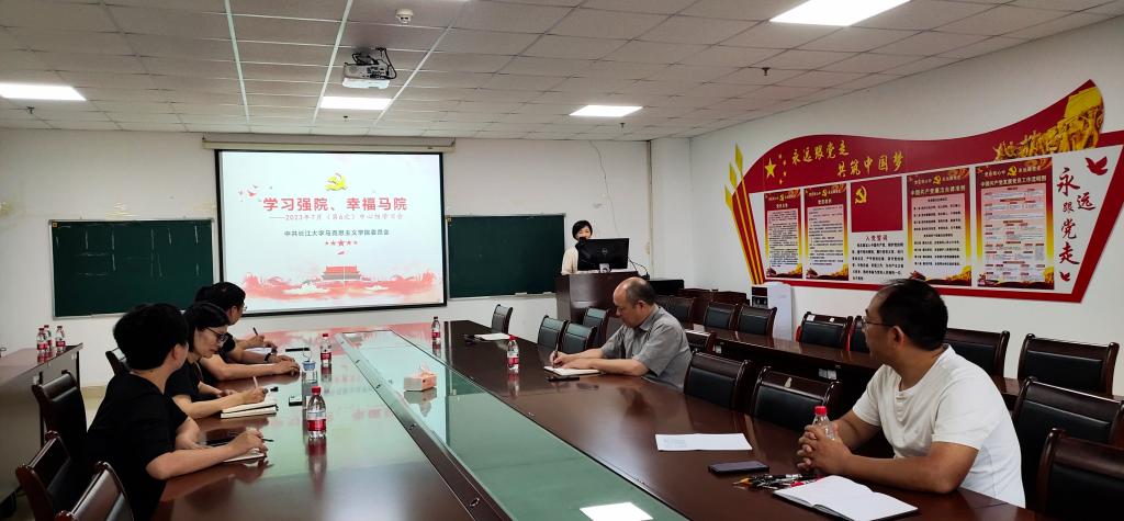 在文科楼1104室召开7月份党委理论学习中心组集中学习会。会议由院党委书记刘小燕主持。
