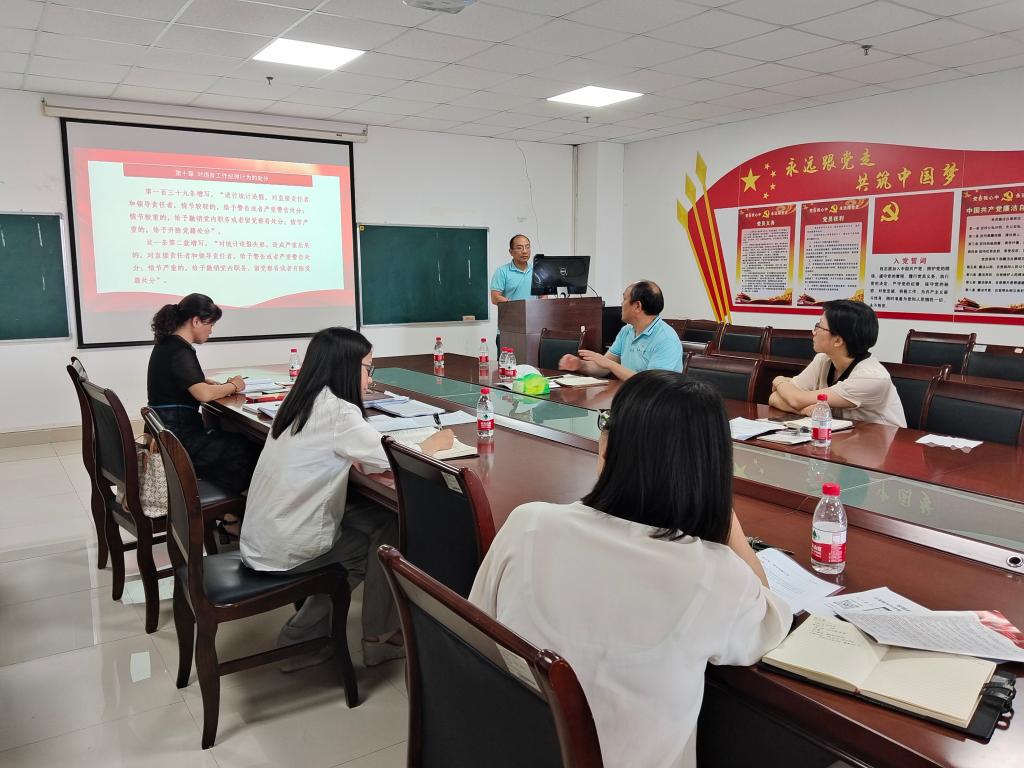 在文科楼1104室举行党纪学习教育读书班集中学习会,专题学习《中国共产党纪律处分条例》(以下简称《条例》),跟进学习党的创新理论,传达学校最新会议精神。学院党委理论学习中心组成员及党委委员参加学习会,学习会由院党委书记刘小燕主持。