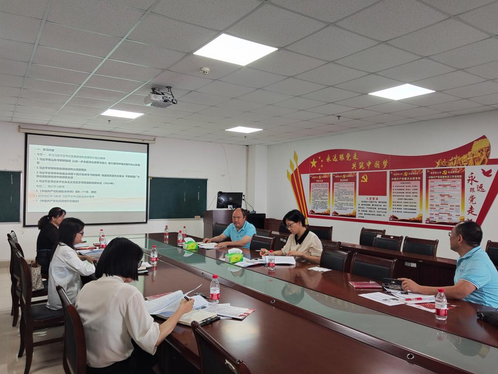 在文科楼1104室召开6月党委理论学习中心组集中学习会,会议由学院党委书记刘小燕主持。
