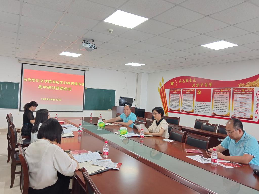 在文科楼1104室举行党纪学习教育读书班总结交流会,专题学习《中国共产党纪律处分条例》(以下简称《条例》)附则部分内容,并开展学习交流。学院党委理论学习中心组成员及党委委员参加学习会,会议由院党委书记刘小燕主持。