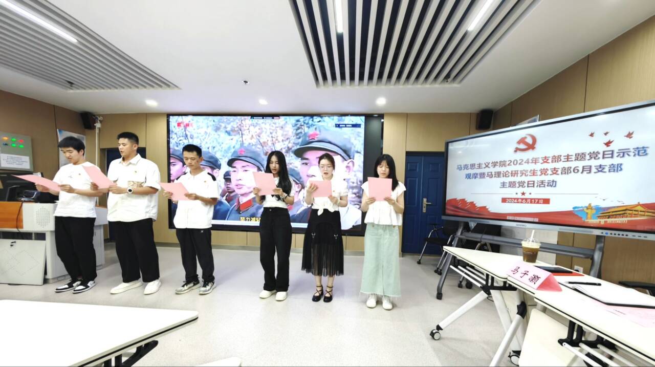 (通讯员 黎娟)为推进党纪学习教育在全院研究生党员中走深走实,教育引导全院研究生党员强化纪律意识,严守纪律规矩。6月17日下午,马理论研究生党支部在文科楼1008室开展“学党纪 明规矩 践初心”主题党日示范观摩活动。学院党委书记刘小燕、各党支部委员参加观摩,马理论研究生党支部全体党员参加活动。