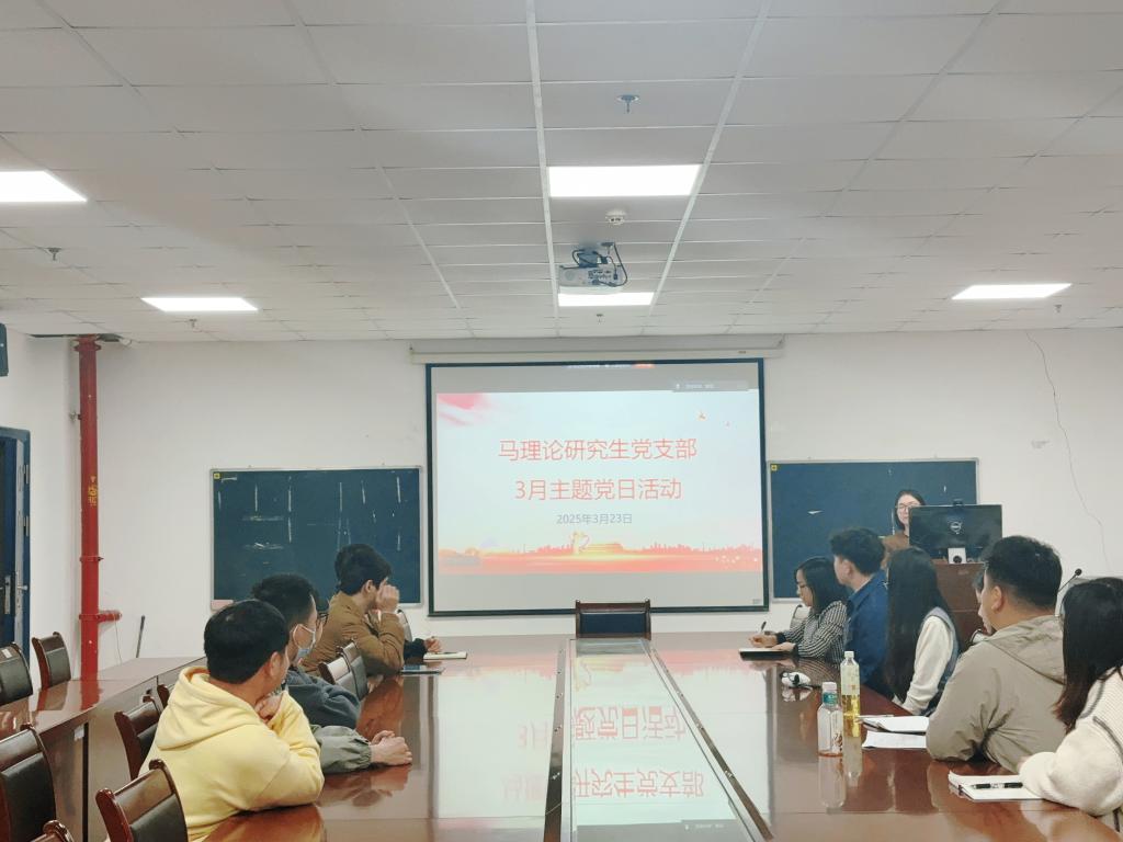 (通讯员 黎娟)按照校、院两级党委部署安排,3月23日晚,马克思主义理论研究生党支部在文科楼1104会议室开展主题党日活动,对深入贯彻中央八项规定精神学习教育进行动员部署。活动由支部组织委员袁田主持。支部党员以线上线下相结合方式参加活动。