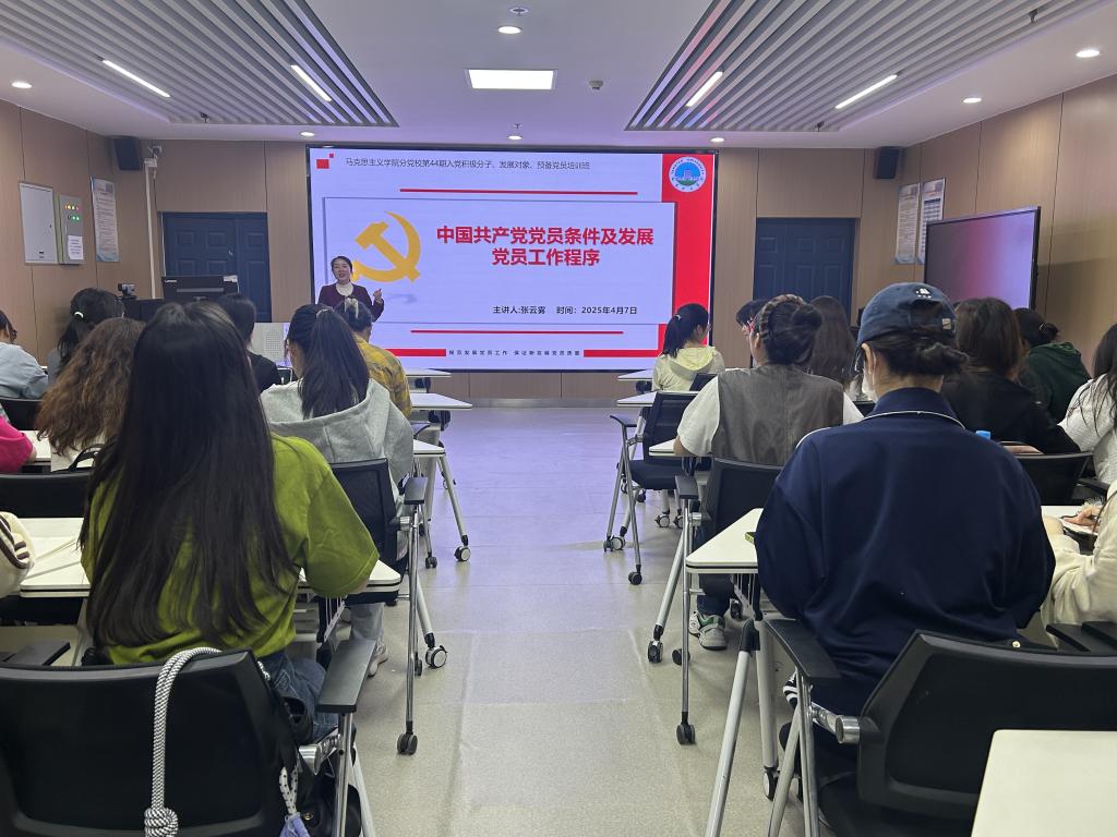 在文科楼1008室召开入党积极分子、发展对象、预备党员培训会。学院党建秘书、本科生党支部书记张云雾主讲,全体新增入党积极分子、发展对象和预备党员参会。