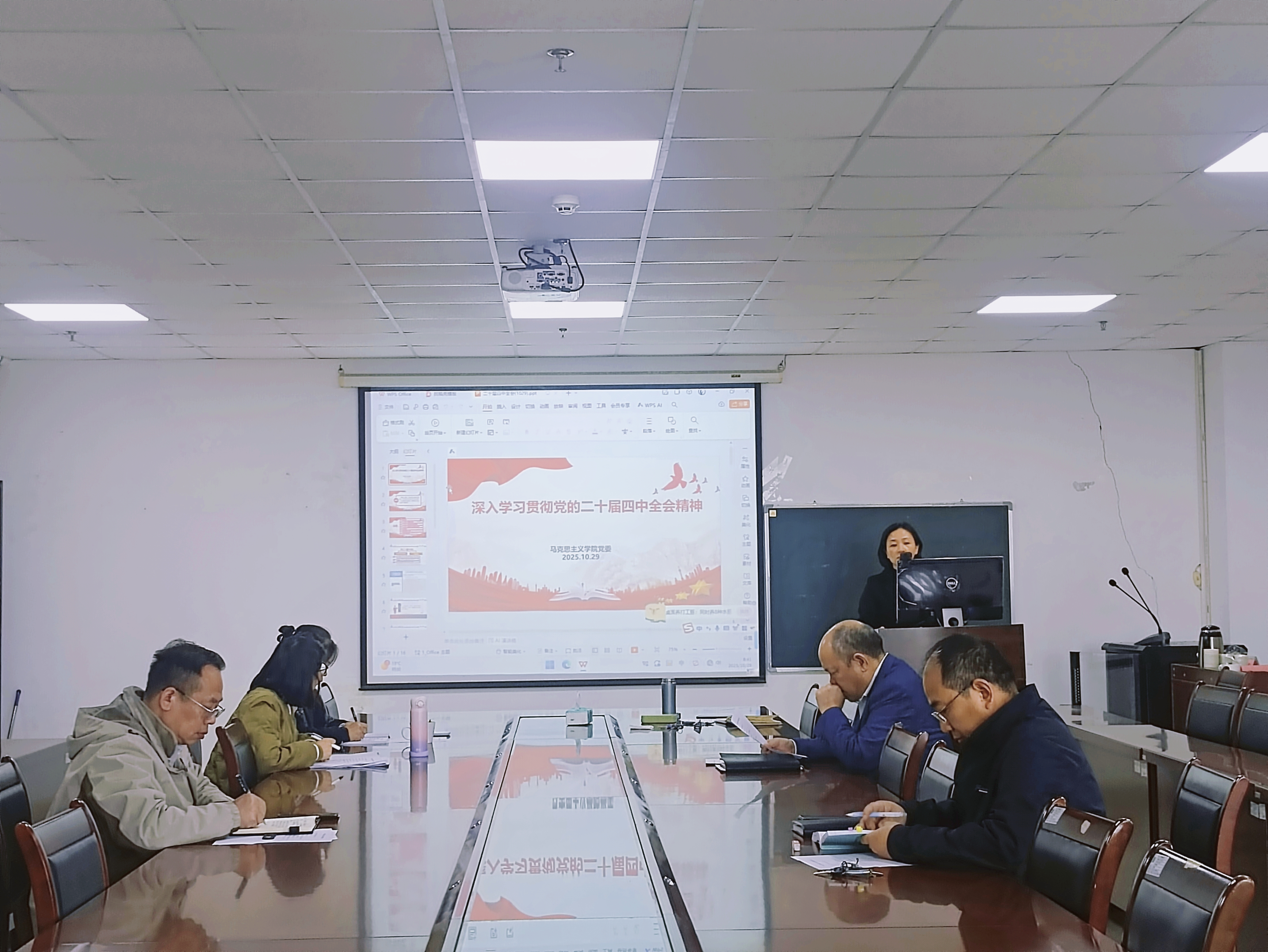 刘小燕在总结讲话中强调,学习宣传贯彻全会精神是当前和今后一个时期重大政治任务。要提高政治站位,深刻领会全会举旗定向的政治意义、继往开来的历史意义、守正创新的理论意义、高瞻远瞩的战略意义,切实把思想和行动统一到党中央决策部署上来,开展好全会精神的学习贯彻、研究阐释、宣传宣讲。要深入领会全会精神对高等教育发展提出的新要求,高度重视、扎实做好学院“十五五”规划编制工作,圆满完成年度重点工作,为实现“十五五”良好开局打牢基础。要把党的二十届四中全会精神的学习与《习近平谈治国理政》第五卷、《中国共产党思想政治工作条例》等内容的学习结合起来,深刻领悟“两个确立”的决定性意义,增强“四个意识”、坚定“四个自信”、做到“两个维护”,当好新时代党的创新理论的坚定信仰者和忠实实践者。