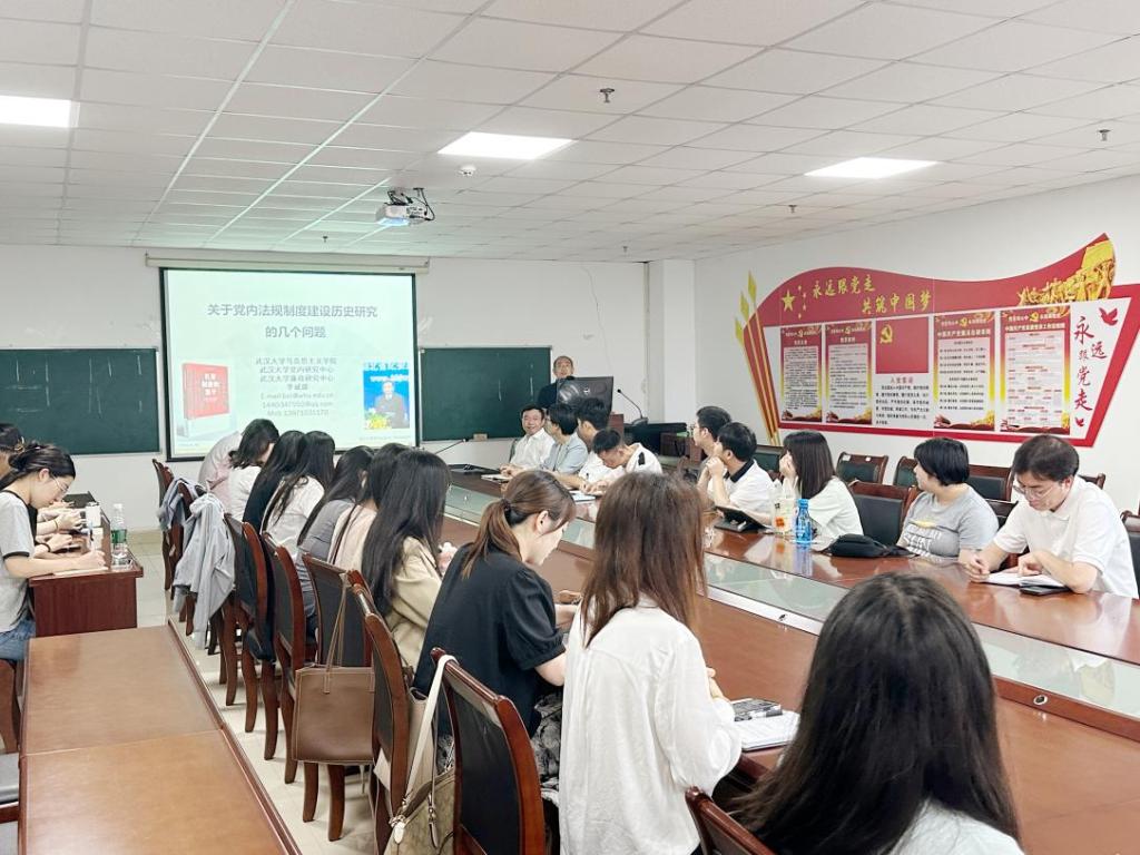 师生带来了一场题为“关于党内法规制度建设历史研究的几个问题”的精彩讲座。讲座由学院副院长涂江波主持,学院40余名师生参与聆听。