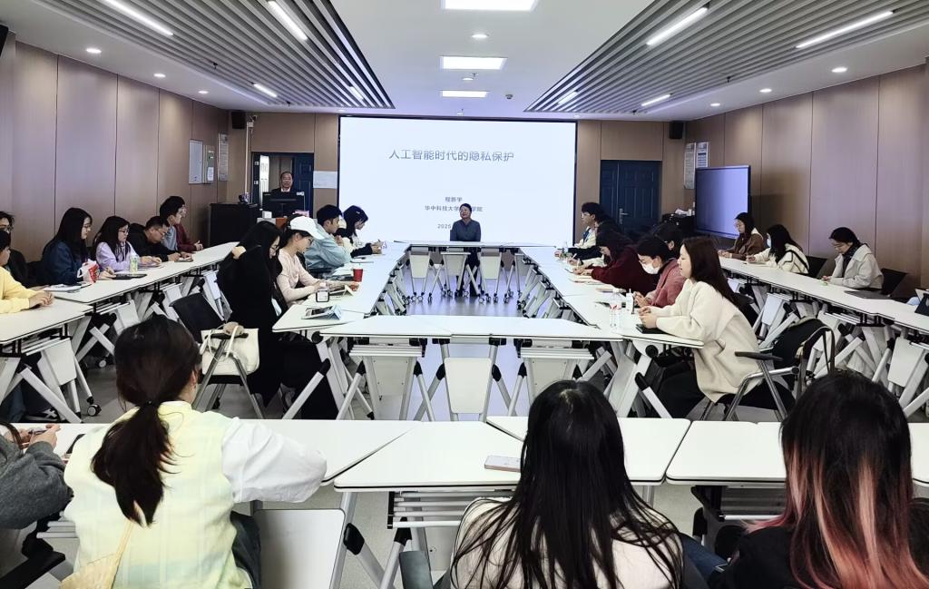 于4月2日下午文科楼1008室举办“思政教育五十年”系列学术讲座2025年第二讲。本次讲座由华中科技大学哲学学院教授、博士生导师、生命伦理学研究中心主任程新宇教授主讲,她以“人工智能时代的隐私保护”为题,为师生带来了一场深度学术讲座。讲座由副院长涂江波主持,学院研一、研二全体学生参与。