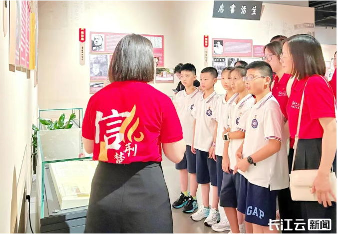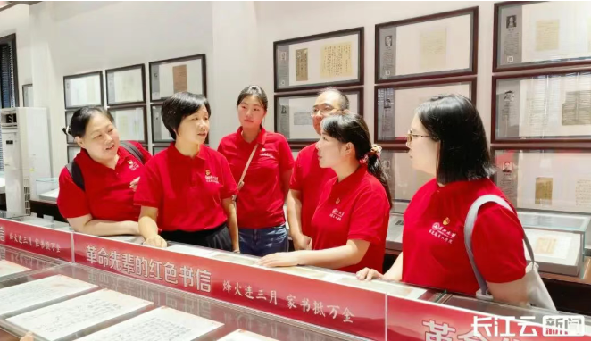 “信·荆楚”团队部分成员在歌乐山革命纪念馆为小学生解读英烈家书)