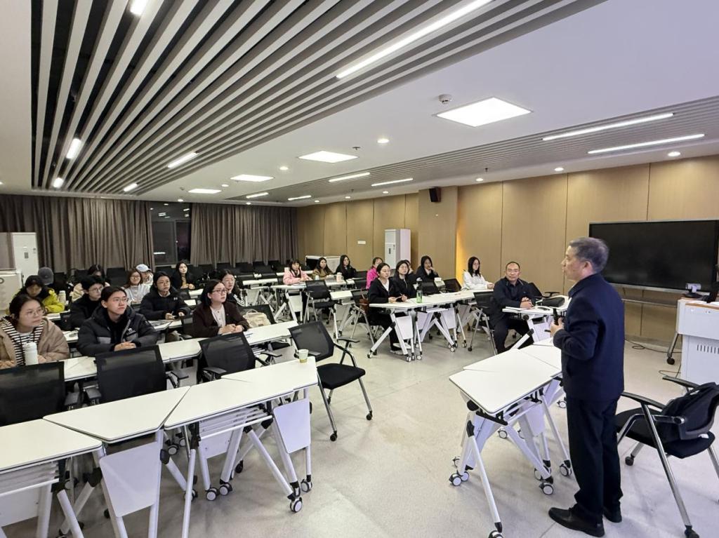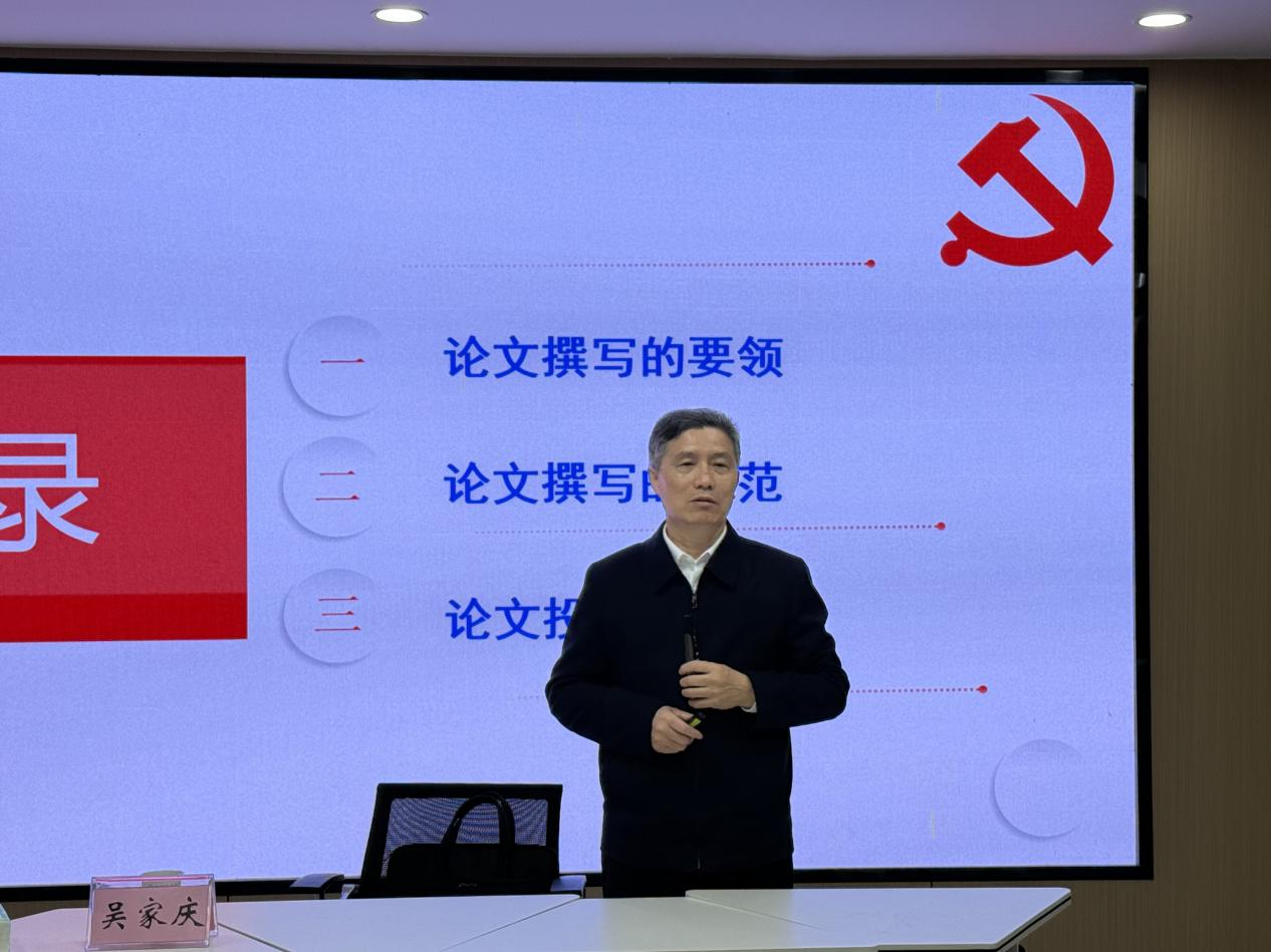 教授、博士生导师吴家庆主讲,他以《学术论文撰写的要领与规范》为题,结合自身数十年学术研究与论文撰写的丰富经验,为师生带来一场兼具指导性与启发性的学术盛宴。讲座由学院副院长涂江波主持,30余名师生参与聆听。