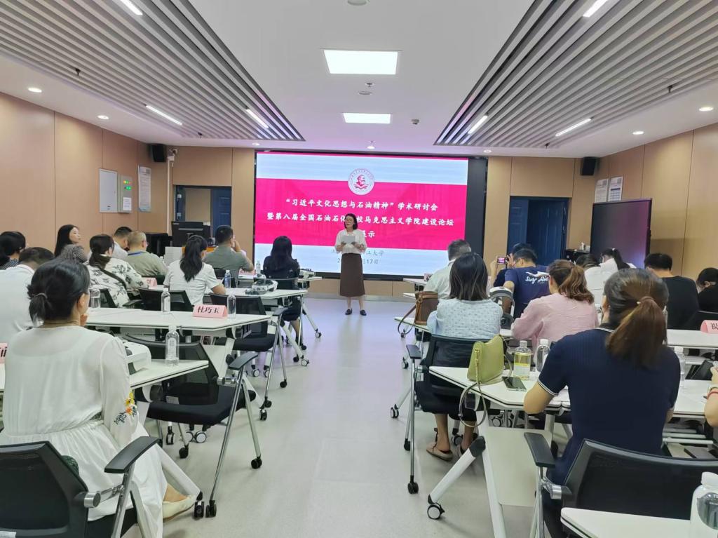 在文科楼1008室组织了教学论坛活动,来自全国多所石油石化高校的青年教师踊跃参与教学展示活动,马原课程组全体教师到现场观摩。