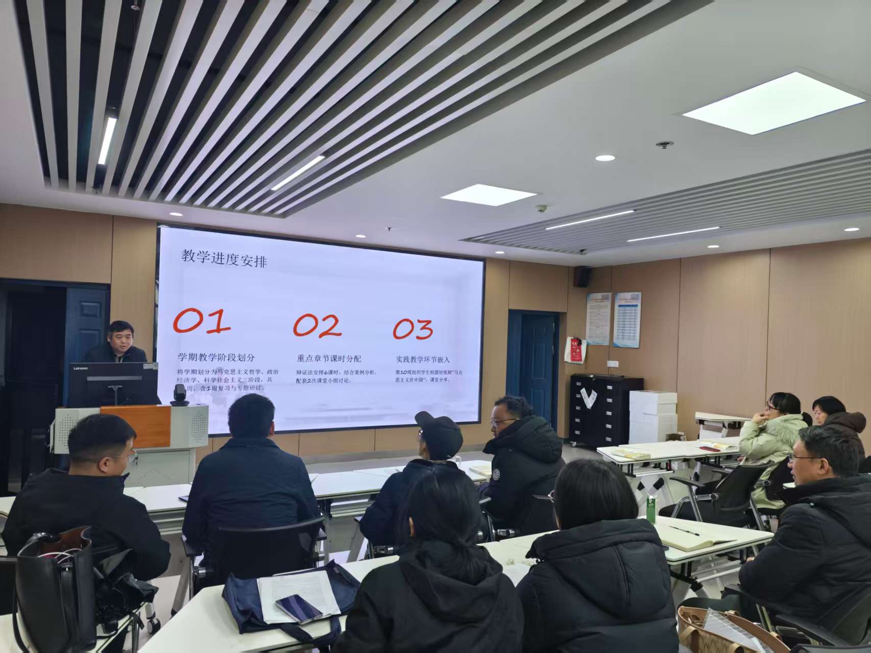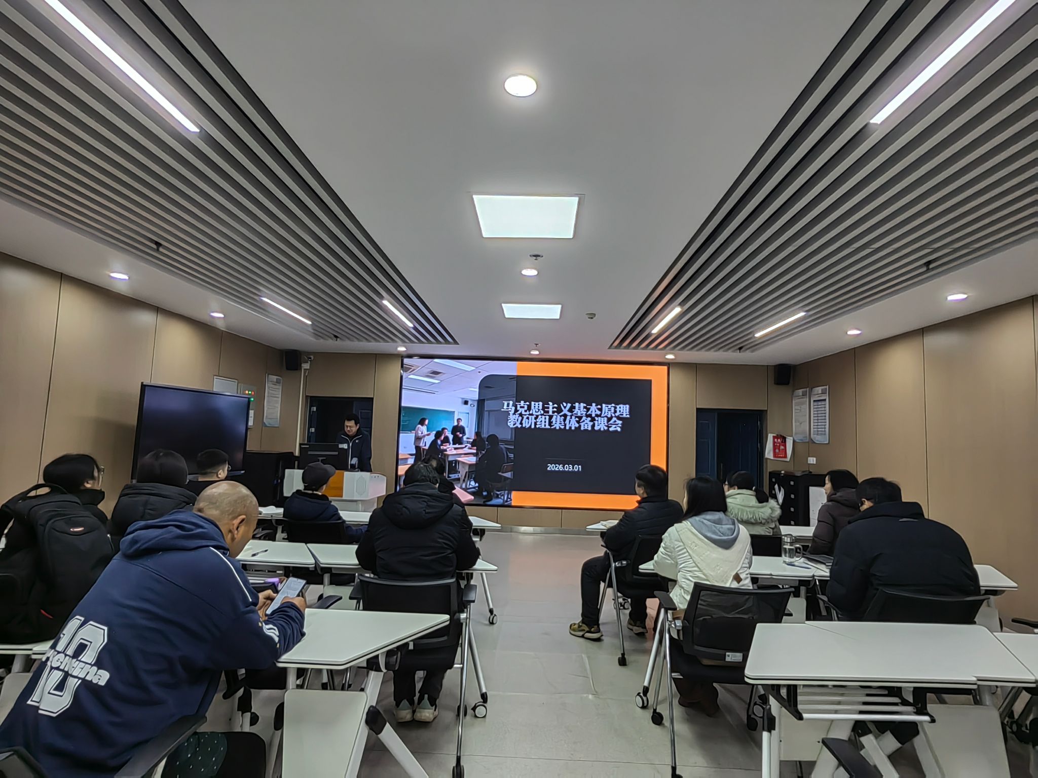 会议首先对寒假期间的准备工作进行了系统梳理与总结。教研室在假期中重点推进了三项工作:一是新学期课程视频拍摄的前期筹划,为教学资源建设打下基础;二是马列经典读书班的详细安排,旨在引导学生深入原著、感悟原理;三是对上学期教学效果进行全面复盘,总结经验、反思不足,为新学期教学改进提供依据。
