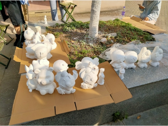 同学们围绕着KT猫、皮卡丘、彼得兔、史迪仔、维尼熊、大象、狮子等几十个白色石膏玩偶,纷纷选择了自己感兴趣的一个,开始调色、上色,历时3个小时,一个个经同学们亲自涂色的全新的玩偶就展现在同学们面前了。