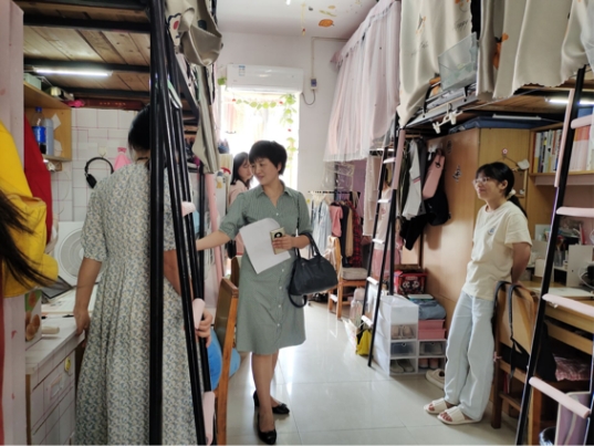 在此次查寝过程中,马书记与在寝学生逐一交谈,询问同学们是否已经适应大学生活。班主任何波老师关心同学们的学习情况及生活日常,张老师提醒同学们注意寝室用电安全,注意日常多通风、勤打扫。查寝人员提醒同学们早晚温差大,要预防感冒,寝室常开窗通风,保持室内空气流通,防控疫情人人有责,要从身边小事做起。