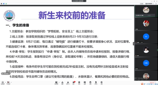 通过腾讯会议开展了 “梦想起航 安全至上”线上主题班会,邀请了2021级全体本科新生、第二学生学位新生及新生家长共同参会。