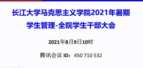 于腾讯会议召开2021年暑期学生管理全院学生干部大会,针对疫情专题部署当前及今后一段时期的安全及疫情防控工作。