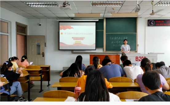 学习小组成员集中在13教208教室开展对党的十九届五中全会精神及《中共中央关于制定国民经济和社会发展第十四个五年规划和二〇三五年远景目标的建议》进行了研讨学习。