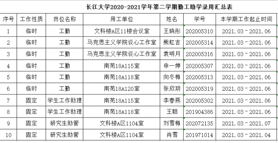 经学生本人申请,学院审核,现将成人色情网 2020-2021学年第二学期勤工助学拟录用名单公式如下: