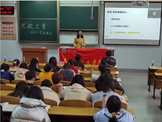 2005届毕业生吴云英及2004届校友文伟的精彩讲座。他们将大学生素质养成概括为情商、爱商、智商、逆商、财商五个方面。