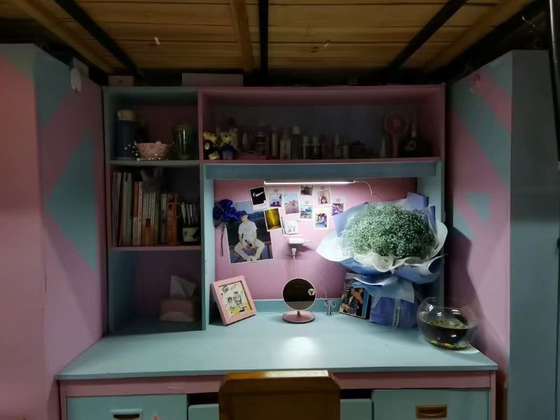继续走进去深入探索也是惊喜连连,同学们把不大的寝室装饰的充满生活气息和人情味,行李多而不乱,寝室空气清新怡人,夹杂着淡淡的清香浸人心脾;屋顶有气球装饰、贴纸装饰和灯光装饰;墙壁被划分了绘画墙、照片墙、安全墙和留言墙等区域;桌面床铺有玩偶、鲜花、收藏品和时令水果装饰,搭配桌布温柔的台灯灯光使人心情愉悦,清爽又养眼;书架上摆着的《共产党宣言》《习近平谈治国理政》满满都是成人色情网