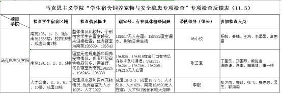 根据学工处《关于开展2020年冬季学生宿舍饲养宠物与安全隐患大检查的通知》要求,成人色情网 于11月5日下午16:30组织开展了学生宿舍大检查工作,副书记马小佼、辅导员张云雾、辅导员李敏分别带领学生干部检查了位于人才公寓、南苑18栋、19栋,校内成套公寓的全院本、研学生寝室,重点检查了饲养宠物与安全隐患情况,关心学生学习、生活状况。学院各宿舍寝室卫生状况良好,无饲养宠物等违规行为,学生精神面貌良好。