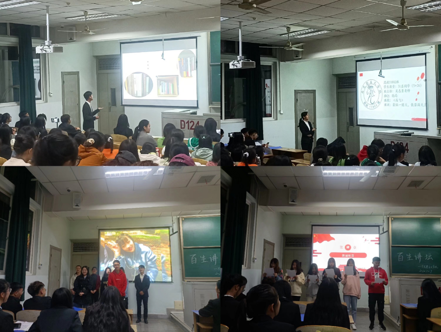 于10月9日晚7:00在13教D124开展了“长大青年说”——“百生讲坛”活动,学工办主任张云雾,学生会主席、部长及相关工作人员和大一全体同学参加本次活动。